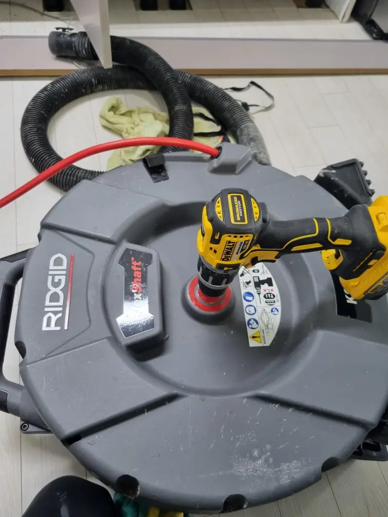 먼저 싱크대 배수구에서 샤프트를 삽입할 수 있도록 기존 배수구를 제거했습니다. 샤프트는 배수관 내부로 직접 삽입되어 막힌 부분을 뚫어내는 방식입니다. 배수관 내부로 샤프트를 천천히 삽입하면서 막힌 지점까지 도달했습니다.