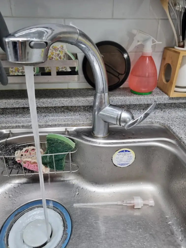 모든 작업이 완료된 후 배수 기능을 종합적으로 테스트했습니다. 싱크대에 물을 가득 받아두고 배수구를 열었을 때 물이 빠르게 배수되는지 확인했습니다. 다양한 양의 물로 여러 번 테스트하여 배수 기능이 안정적인지 점검했습니다.